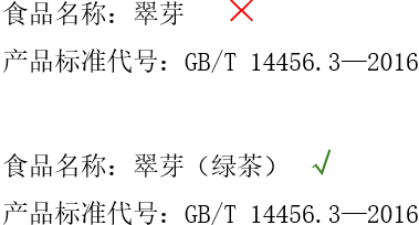 2025版《标签通则》4.2条款规定“食品名称,应在食品标签的醒目位置标示反映食品的真实属性的名称。当国家标准、行业标准、地方标准、国务院相关部门发布的规章及与食品命名有关的公告中已规定或采用了某食品的一个或几个名称时,应选用其中的一个或与上述名称本质相同的名称作为属性名称”。该条款延续2011版的内容,强化了“反映食品真实属性”的核心原则。在实际标签审核中,一个常见的问题是食品名称与真实属性脱节。例如,一款执行GB/T 30357.2—2013《乌龙茶 第2部分:铁观音》标准的茶叶,直接以“铁观音”命名是合规的,因为其食品名称与标准所定义的属性名一致。一款名为“翠芽”的茶叶则暴露了一些问题,产品执行的是GB/T 14456.3—2016《绿茶 第3部分:中小叶种绿茶》,但单一“翠芽”二字无法让消费者明确识别其为绿茶。根据新规,此类情况必须在食品名称中标注真实属性,应规范地标示为“翠芽(绿茶)”,从而避免对消费者造成误导。