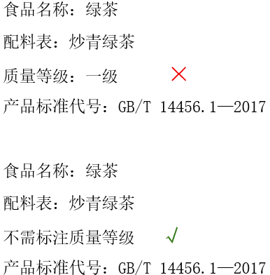2025版《标签通则》4.11条款指明“食品所执行的标准已明确规定质量(品质)等级的,应标示质量(品质)等级,否则不得标示质量(品质)等级。”茶叶产品的等级分类较多,应按照标准标示产品等级执行。如GB/T 22292—2017《茉莉花茶》等级分为:特种、特级、一级至五级、碎茶、片茶。DB3301/T 1135—2023《地理标志产品 西湖龙井茶》等级分为:精品、特级、一级、二级。《2025版<标签通则>问答》第四十条“产品分类、产品类别等不属于质量等级。”在质量等级上主要问题有:没有级别、不按规定级别名称标注、标注位置不够醒目等。在实际标签审核中还发现,某绿茶产品执行GB/T 14456.1—2017《绿茶 第1部分:基本要求》,其标签上标注“一级”。该标准仅对产品进行分类,并未设立质量等级。因此,标注“一级”缺乏依据。对于执行此类标准的茶叶产品,其标签不应标注产品等级。