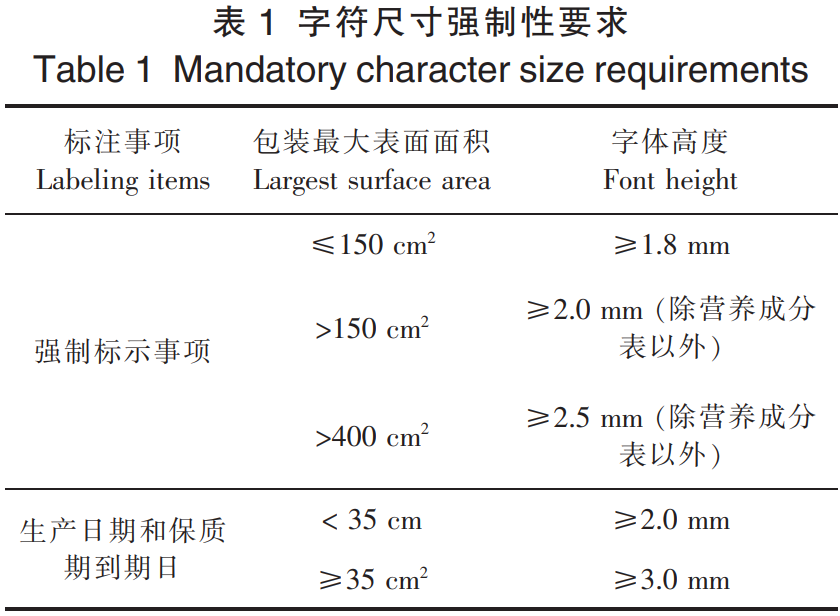 2025版《管理办法》第十三条对预包装食品标签的字符尺寸要求进行了显著细化,具体规定如表1所示。