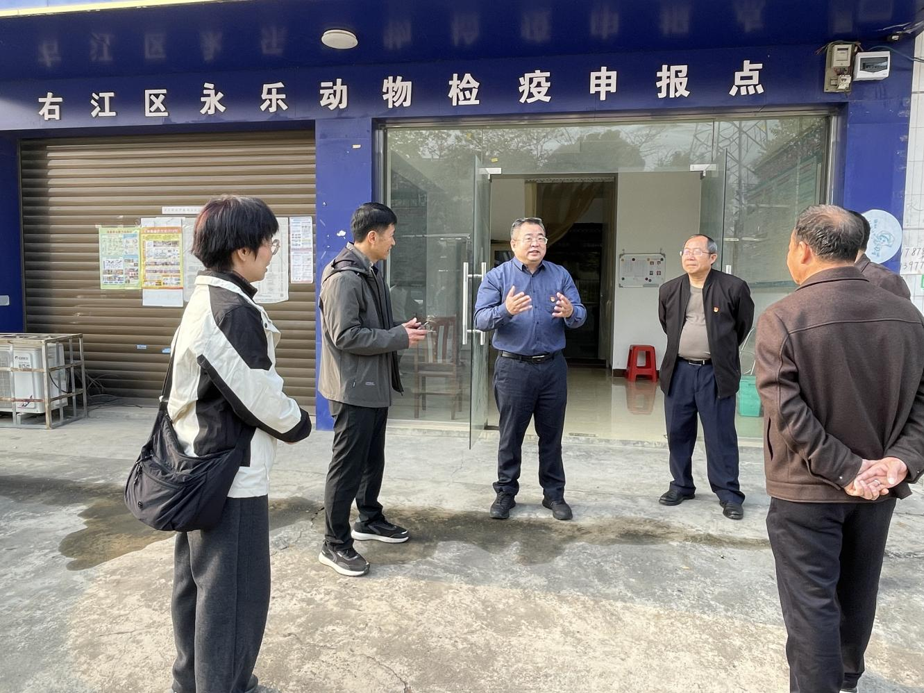 图为 在右江区永乐动物检疫申报点开展主题党日活动现场