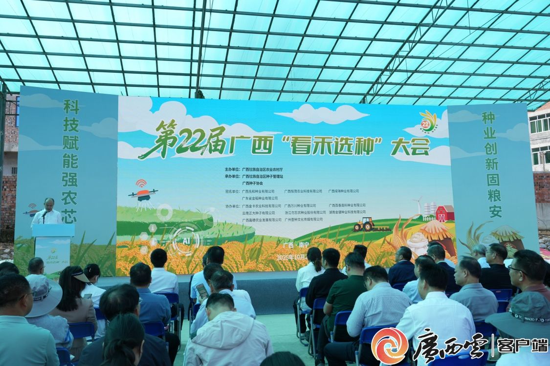 种子是农业的“芯片”,广西种业的持续进步,是广西粮食生产屡创新高的关键所在。“历经二十二载砥砺前行,广西‘看禾选种’大会持续打造看得见、摸得着的农业生产‘样板间’,逐步构建起‘选—评—推’一体化的品种推广体系,通过建立‘展示—鉴定—推广’闭环机制,有效破解科技成果转化‘最后一公里’难题,切实助力农业提质、农民增收、产业增效。”自治区农业农村厅党组成员、副厅长唐咸来表示。