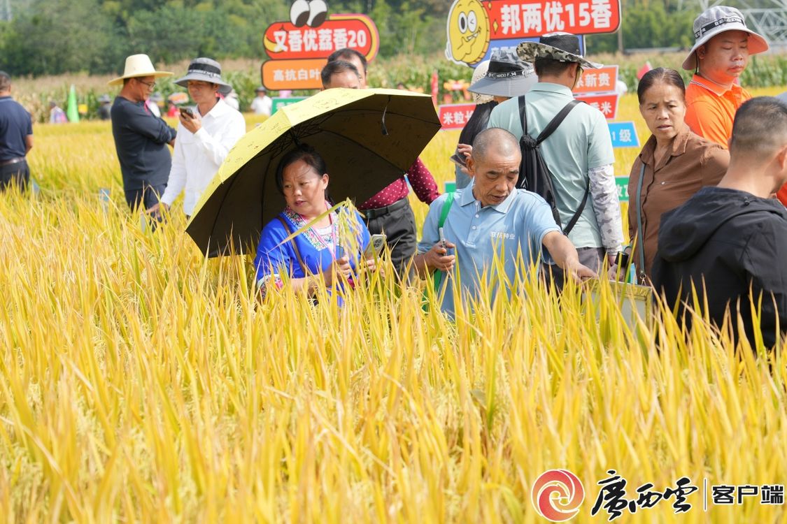 这一活动的持续举办,不仅为广西品种选育带来了重大突破,更带动了一系列拥有广西自主品牌、表现优异的水稻、玉米等新品种的涌现。水稻田间,“我们种的水稻品种‘邦两优15香’米粒细长饱满,抗倒伏能力强,将是我们2026年重点推介的产品。”河池市旺欣农业科技有限公司区域经理庞盛阳在田间撸起一株水稻热情地向观众介绍道。