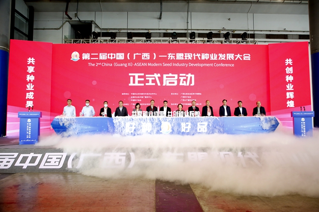 文信连在致辞中表示,近年来,广西认真贯彻落实中央关于发展现代种业的决策部署,立足种质资源优势,用好国际国内两个市场、两种资源,大力实施现代种业提升工程,突出抓好种质资源保护、品种攻关选育、龙头企业培育、品牌示范推广、种业质量监管等工作,取得了明显成效。下一步,广西将进一步夯实种质资源保护基础,加快现代种业基地建设,推进种业育种技术攻关,扶持现代种业企业发展,大力净化种业市场环境,持续加强与东盟国家的交流合作,坚决打赢打好种业翻身仗,持续推进广西现代种业向更高质量、更高水平发展。