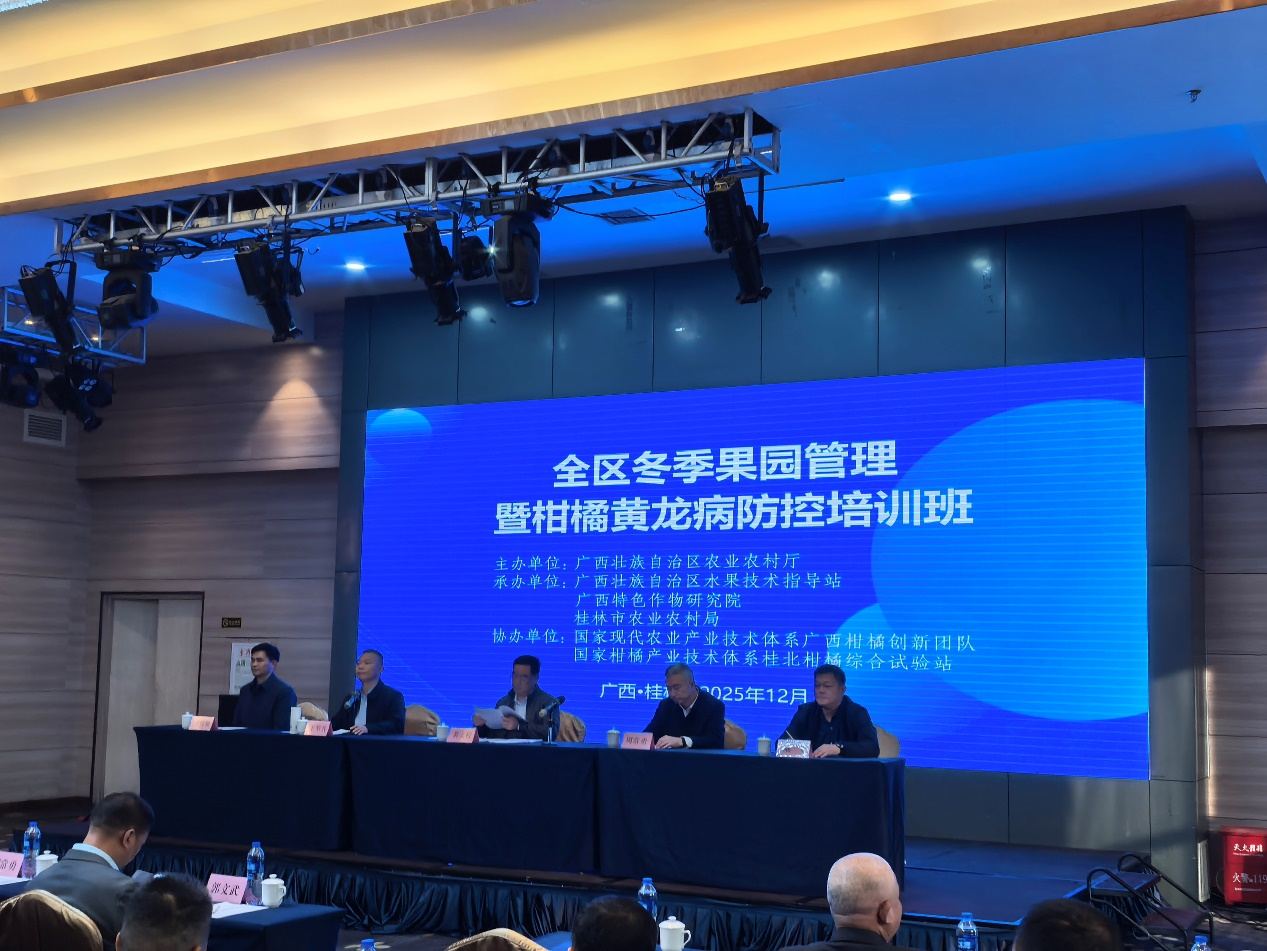 本次培训班由自治区农业农村厅主办,自治区水果技术指导站、广西特色作物研究院及桂林市农业农村局承办。国家柑橘产业技术体系桂北柑橘综合试验站、国家现代农业产业技术体系广西柑橘创新团队协办。