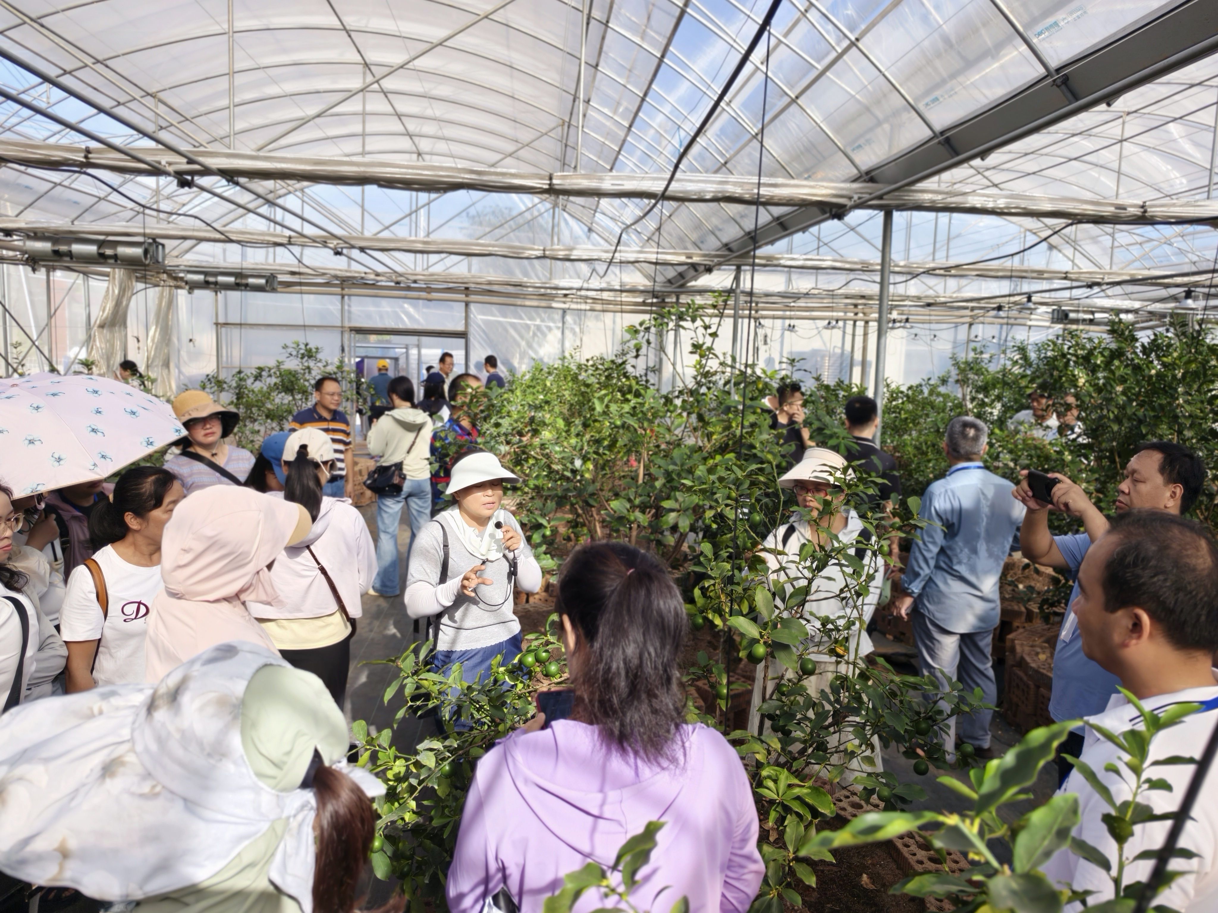 活动期间,实验室科研人员带领学员们先后走进我院科技创新示范基地、农业农村部广西桂林柑橘无病毒良种繁育基地等科研场所,向学员们介绍广西柑橘产业发展现状,并围绕柑橘脱毒种苗的生产应用、高标准建园、黄龙病综合防控、绿色果品生产及采后保鲜等前沿技术展开详细讲解。同时,科研人员还针对葡萄种植,向学员普及疏果保果、水肥智能管理及病虫害防治等现代管理技术。此次实地研学为基层农技人员打通在农业生产过程中遇到的痛点难点提供了有效的技术支撑。