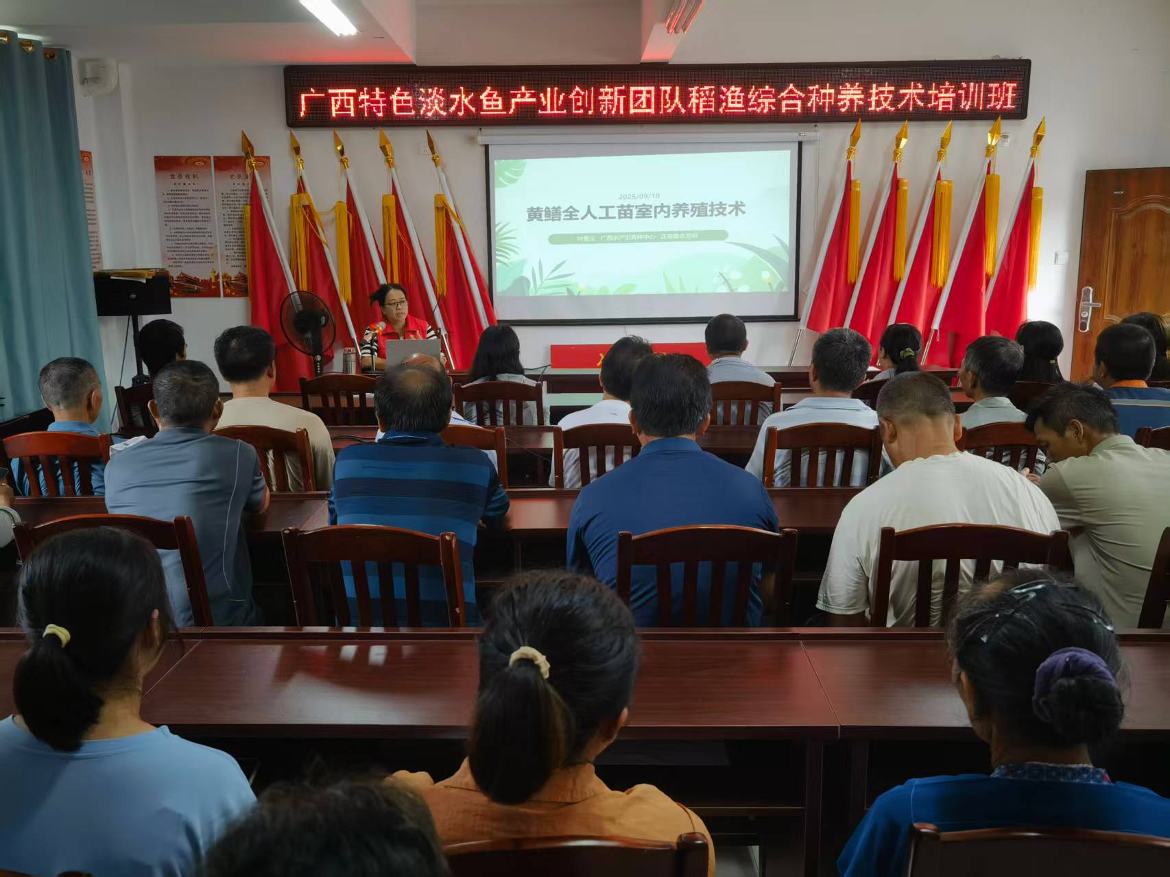 近日,自治区水产引育种中心乡村科技特派员应广西特色淡水鱼产业创新团队邀请,赴三江侗族自治县独峒镇具盘村开展黄鳝室内养殖技术专题培训,旨在推动地方特色水产养殖业提质增效,助力乡村振兴。