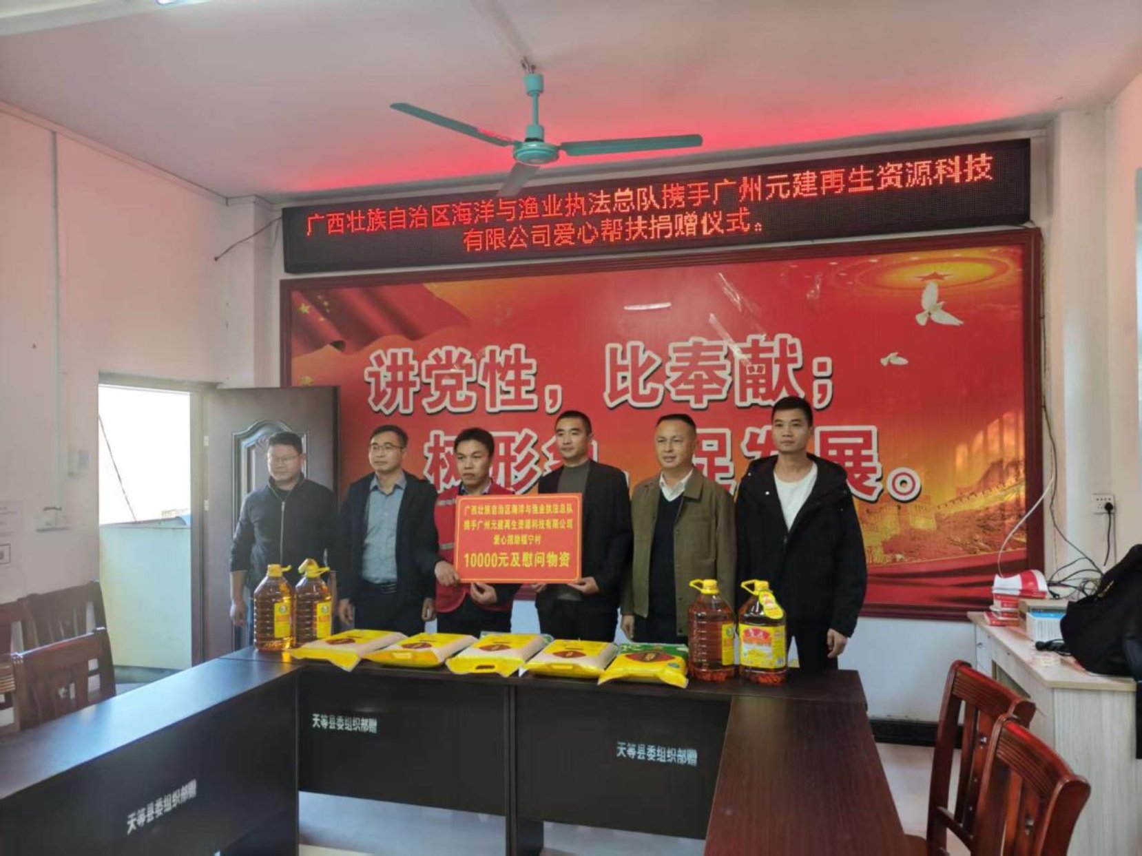 11月20日-21日,广西区海洋与渔业执法总队领导一行深入天等县福新镇福宁村、都康乡把孔村,开展乡村振兴走访慰问工作,并联合有关再生资源科技公司举办爱心捐助活动,以实际行动为脱贫村发展注入暖流、凝聚力量。