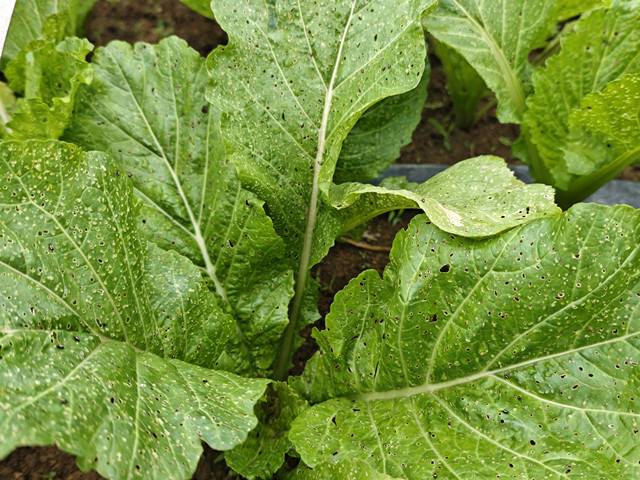 2、黄曲条跳甲:在叶菜类发生较重,虫口密度一般250~350头/百株,重的达1855头/百株。