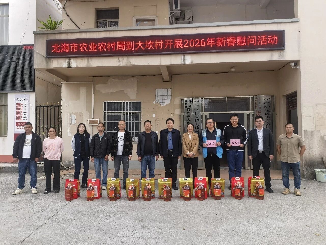 新春将至,暖意先行。2月5日,北海市农业农村局党组书记、局长何来带队到银海区福成镇大坎村和合浦县西场镇亚乪村,开展2026年春节走访慰问活动,向驻村工作队和村“两委”干部送上节日问候,对他们的辛勤工作表示感谢,并鼓励大家在新的一年里继续担当作为,推动乡村振兴不断取得新成效。