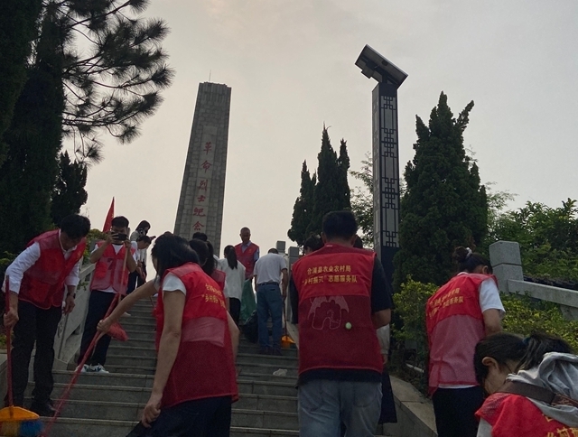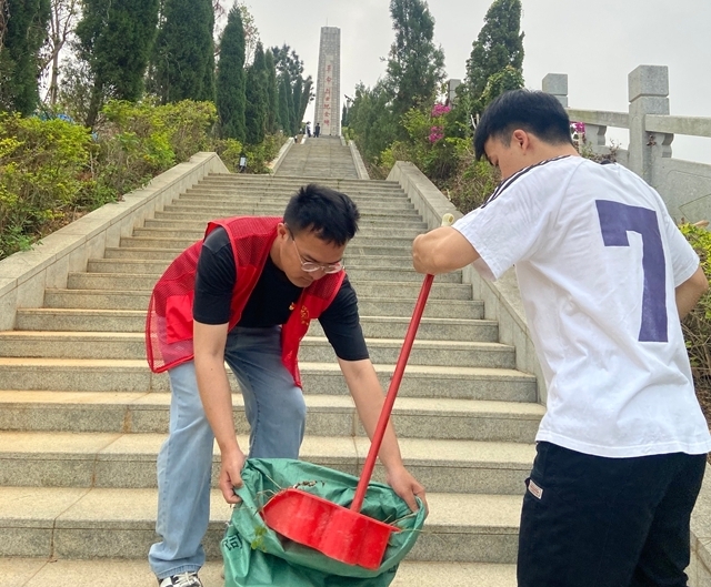 祭扫活动中,清扫纪念碑周边环境成为本次活动的重点环节。面对纪念碑前长长的台阶,以及散落的枯枝、落叶和零星垃圾,全体人员分工协作、干劲十足,从台阶顶端到下方广场,不放过任何一个卫生死角,认真清扫每一处垃圾、仔细清理每一根枯枝。阳光洒在每个人的身上,汗水浸湿了衣衫,鲜红的党员徽章在烈日下熠熠生辉,成为现场最动人的风景。经过近一个小时的辛勤劳作,革命烈士纪念碑周边的长台阶及广场环境被打扫得干干净净,以整洁肃穆的环境告慰英烈忠魂。