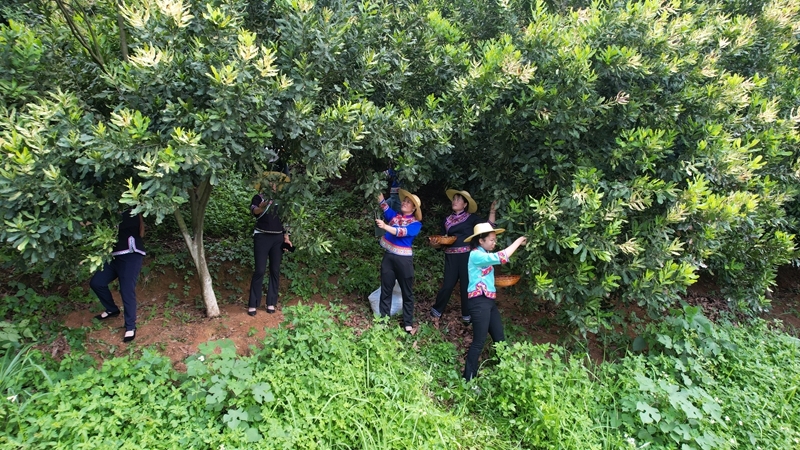 该公司通过“公司+基地+合作社+农户”的模式,通过引进新品种、新技术指导农户种植澳洲坚果,并带动农户就业700多人,丰收的红利正实实在在流入农户的口袋。在技术支撑上,公司开展丰产栽培示范,为种植户提供专业培训,更签订原料回购合同,彻底打消种植户“种得出、卖不掉”的顾虑;在就业带动上,示范区常年吸纳周边村民参与管护,采收旺季更是热闹非凡。