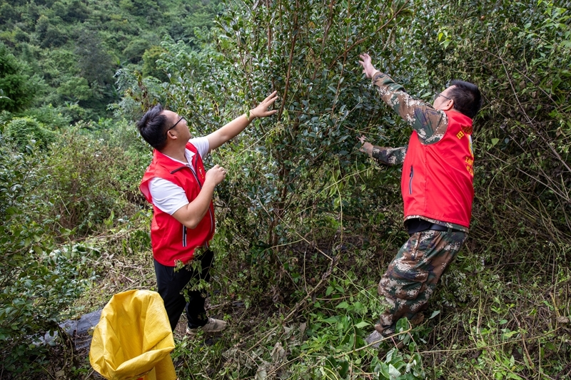 八中村村“两委”组织党员干部采摘油茶果。蒙金山 摄