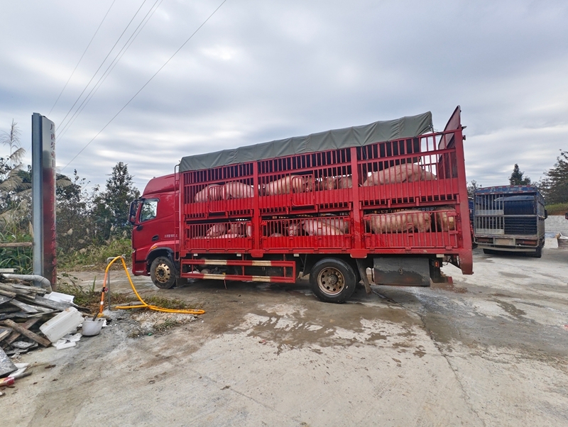 据养殖场负责人介绍,此次出栏的生猪依托规模化、标准化养殖体系实现品质与效益双提升。“我们与双胞胎公司合作,选用抗病性强、生长周期优的优质猪种,搭配符合绿色养殖标准的定制化饲料,同时组建技术团队,对猪苗进行专业化养殖。”负责人表示,科学养殖模式让生猪存活率稳定保持在98%以上,出肉率较传统散养提升20%左右,出栏生猪肉质紧实、营养均衡、检疫合格,已通过订单模式销往周边省市商超及屠宰企业,为板洪村养殖产业打响品牌奠定基础。