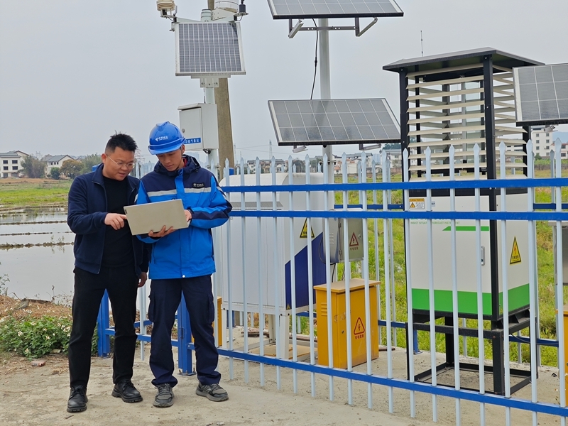 技术人员演示监测仪器如何使用。张亚萍 摄