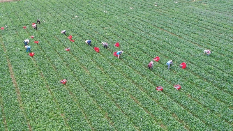 从空中俯瞰,三千亩绿色生态蔬菜基地蔚为壮观。