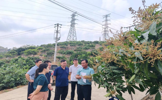 如图为 调研组到田东县主要芒果生产基地调研现场图片