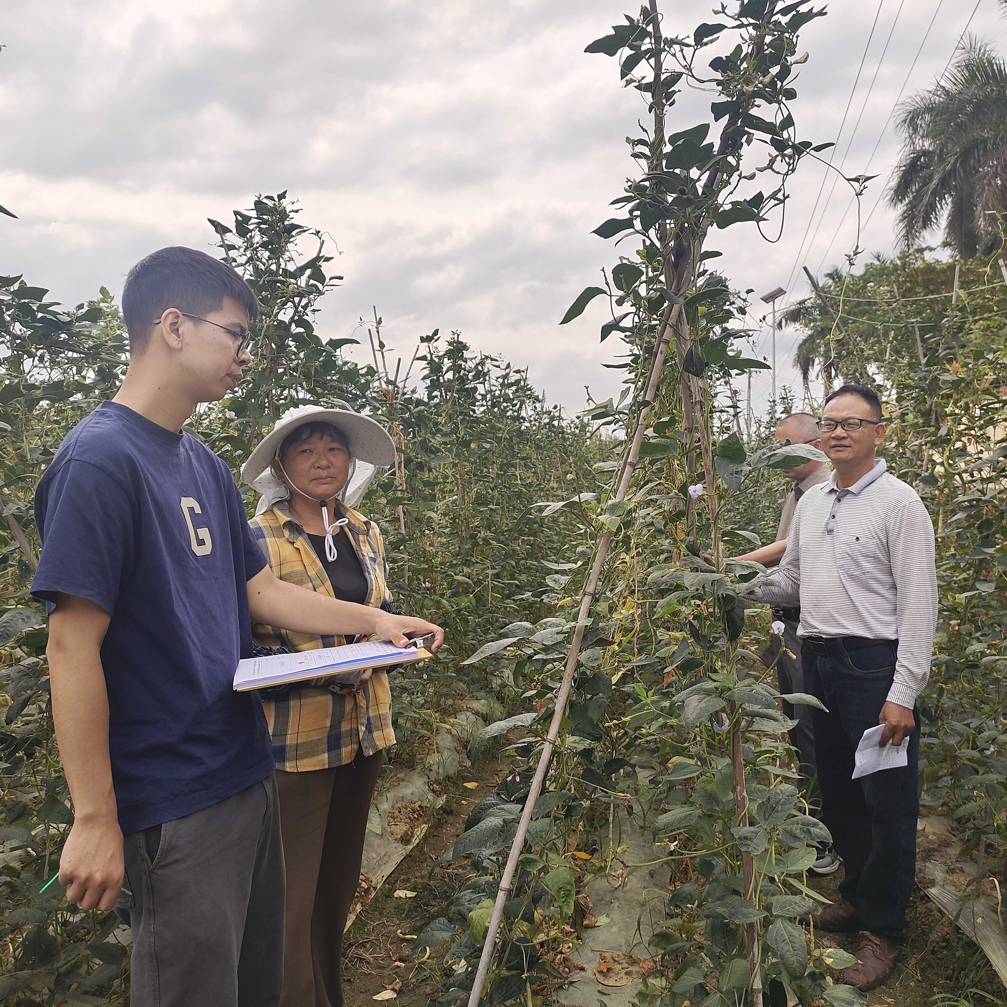 当前正值豇豆集中上市期,田东县农业农村局安监股、县农业种子和农产品质量安全检测站联合乡镇农业服务中心深入田间地头、收购点,开展豇豆质量安全专项监管。