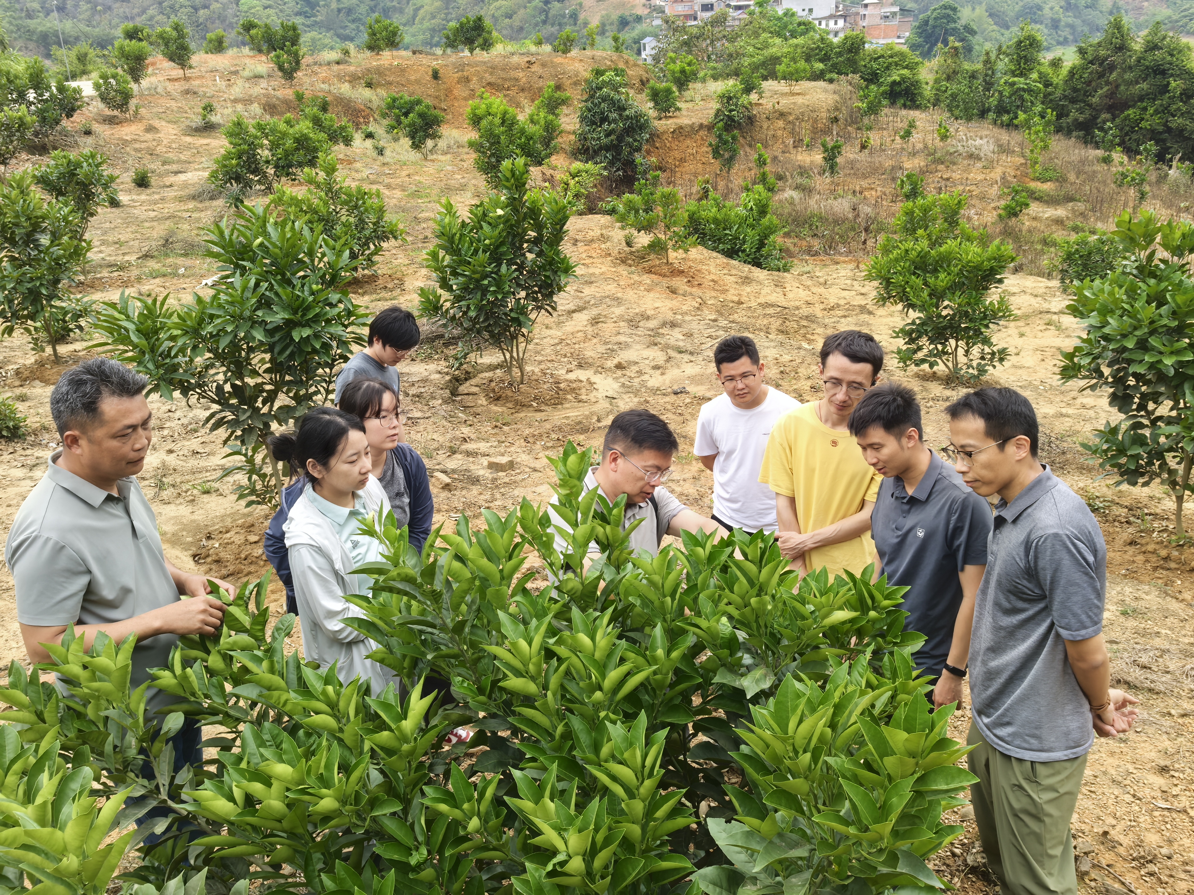 此次专家团队汇聚了广州中医药大学中药学院研究员及学生代表、广东农垦热带农业研究院农艺师、广西农科院高级农艺师等专业力量。在橘红种植基地,专家现场开展土壤检测,系统采集土壤、橘红嫩叶及规格果实样本,为品种优化和土壤改良提供科学依据。