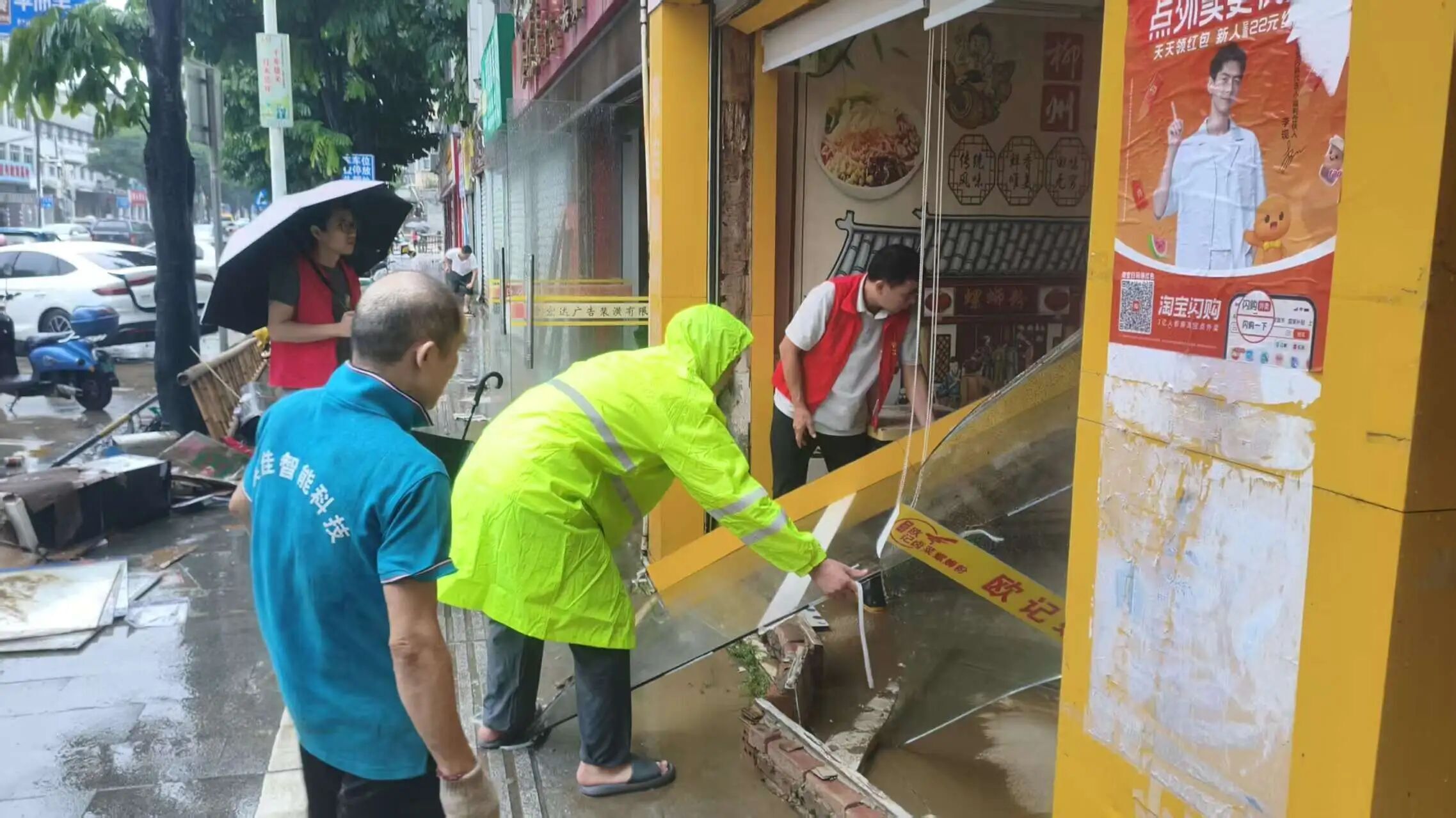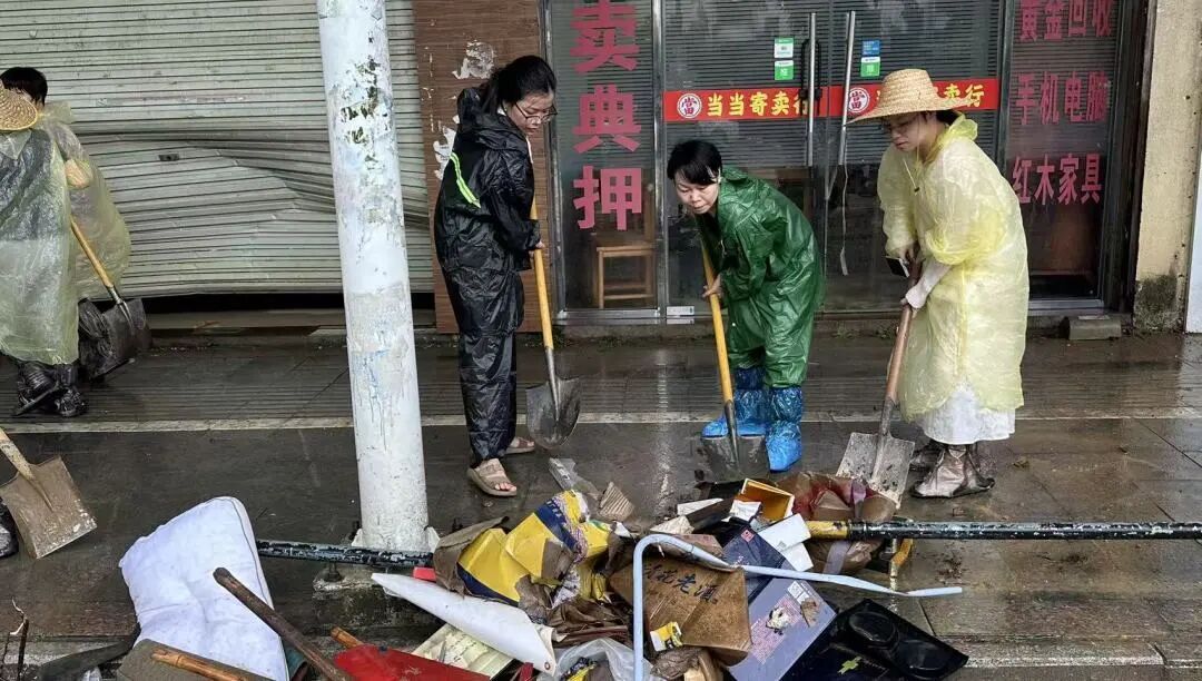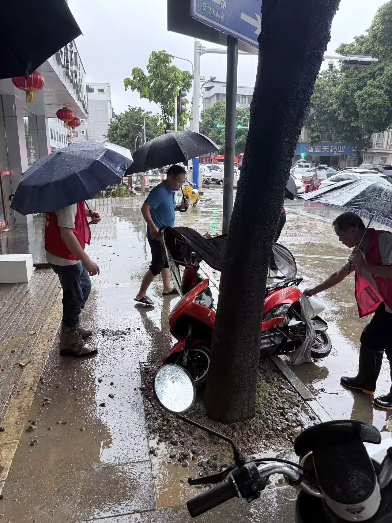 受强降雨影响,我局周边店铺及停放车辆遭受洪水浸泡。30日早上水位退去后,我局迅速组织18名党员和62名干部组成2支“志愿服务队”,并由党员任组长,第一时间奔赴现场,协助居民群众恢复生产生活秩序。在现场,身着红色志愿马甲的队员们分工协作、有条不紊地开展工作,协助清理道路两侧淤泥和积水,并协助20余家店铺清理因洪水浸泡损坏的物品,搬运规整电动车及小黄车100多辆,拾还车牌2块。