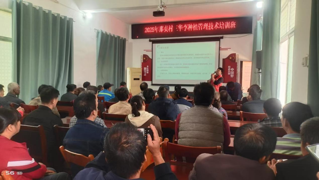 近日,江州镇那贞村委大院内座无虚席,一场关于三华李种植管理的技术培训火热开讲。该村55名种植户及意向种植村民齐聚一堂,向广西落叶果树产业创新团队桂南综合试验站站长、广西热作所两位高级农艺师“取经”,现场学习交流氛围热烈。