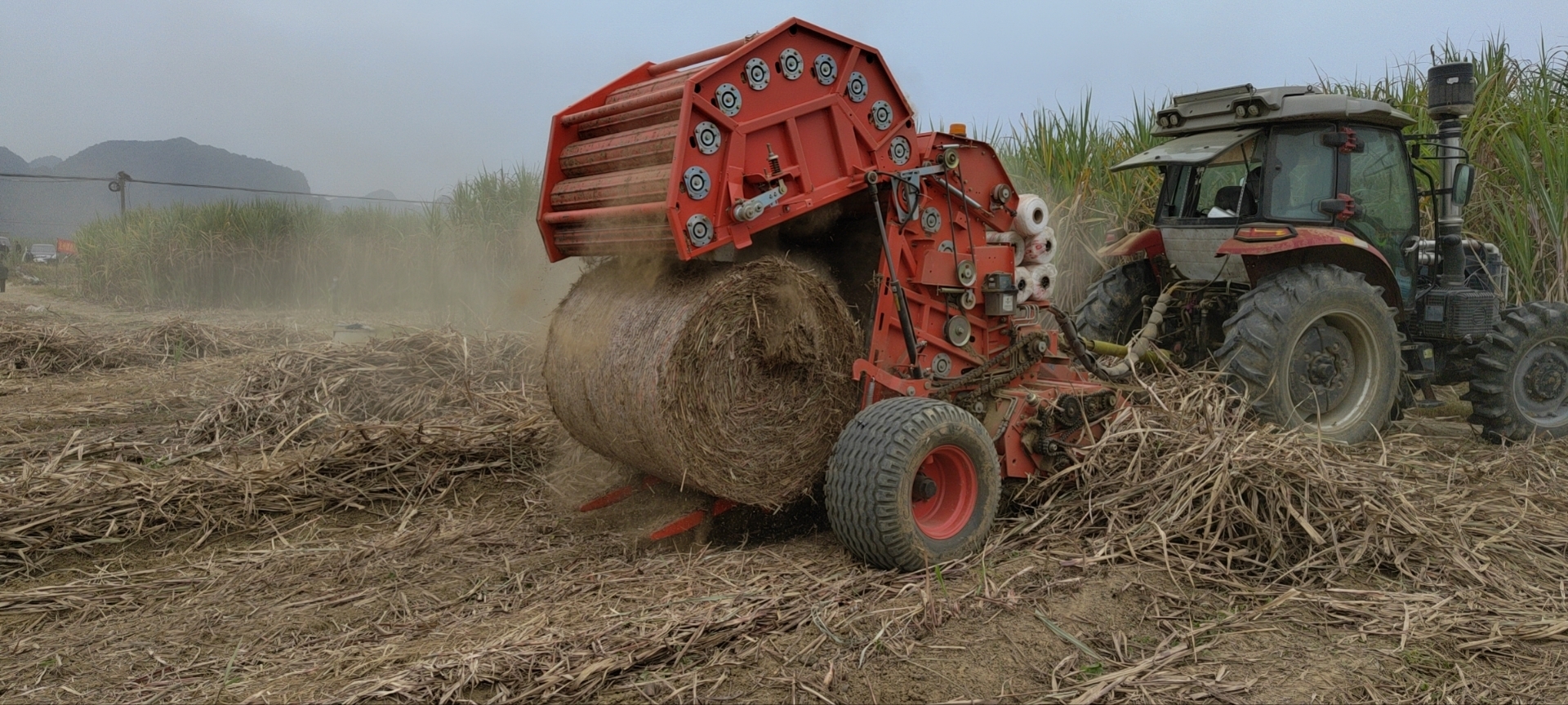 (图为:在上龙乡开展甘蔗秸秆打捆离田工作)