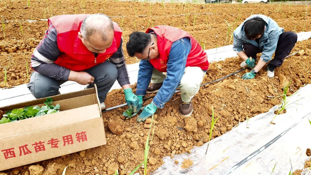 活动现场,一支身着红色马甲的“春耕助农服务队”格外醒目。他们不仅协助农户翻土、定植,缓解劳动力不足的燃眉之急,更将技术课堂搬到了田间地头。依托“甘蔗+西瓜”等高效间套种模式,有种植经验的党员在劳作间隙,手把手指导农户精准把控株距行距,讲解水肥统筹管理及作物共生期管护要领,确保甘蔗与西瓜和谐共生、双向丰收,真正实现“一地多收、空间互补”。