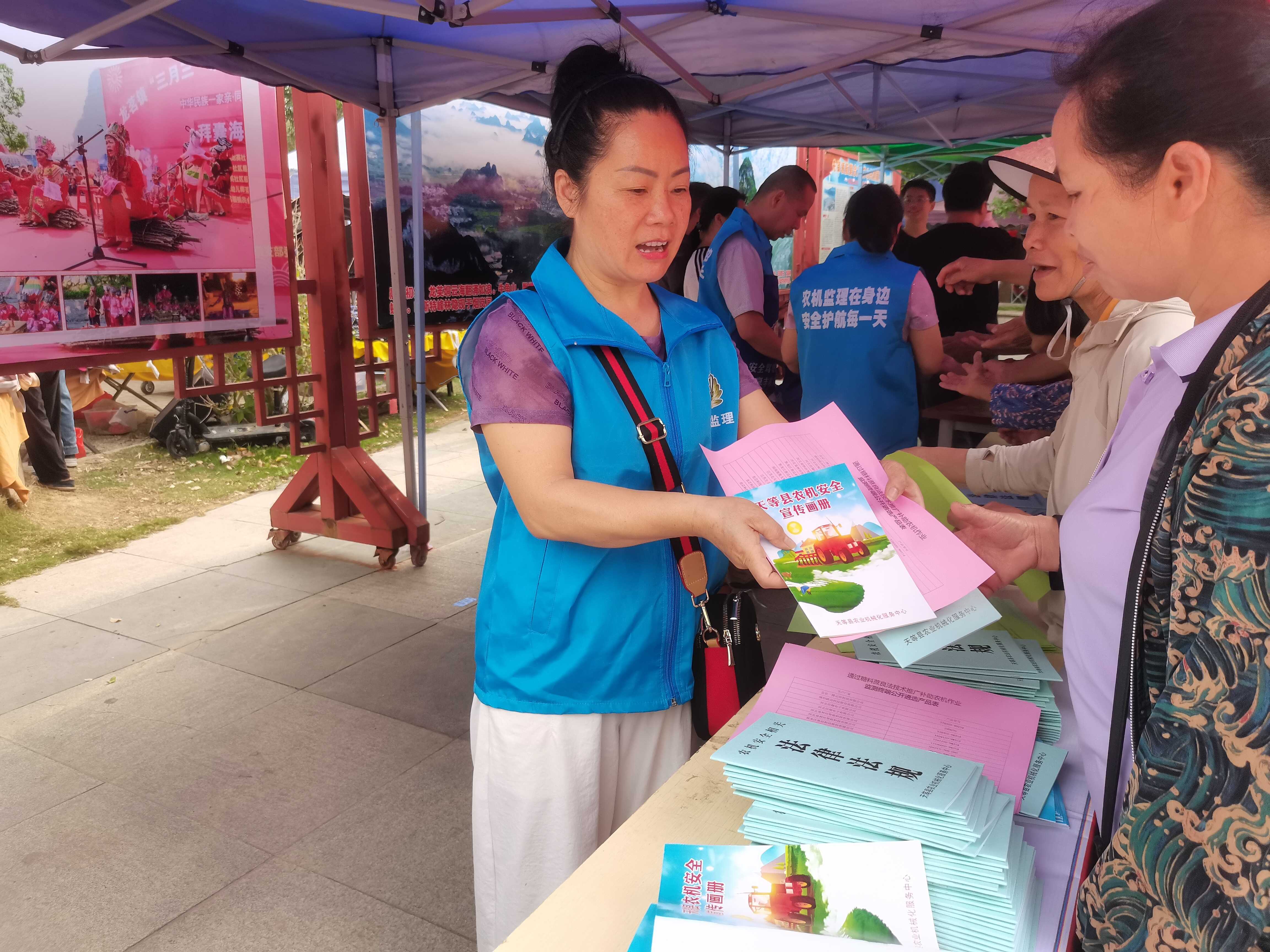活动现场,工作人员通过设立咨询台、悬挂宣传横幅、发放《农机安全操作手册》《农机购置补贴申请指南》《农机安全法律知识》等宣传资料,以及现场解答群众疑问等多种形式,用通俗易懂的本地壮话、土话,向过往群众和歌圩游客详细讲解农机安全驾驶操作规程、农机具日常维护保养要点,以及最新的农机购置补贴种类、标准和申请流程。