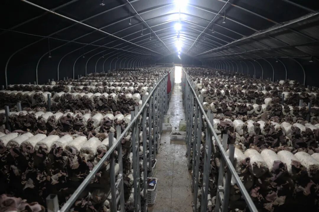 据了解,该基地采用“党委+合作社+农户”运营模式,通过党委统筹、合作社运营、农户参与,实现资源整合,规模化经营与利益共享。基地占地面积2000多平方米,配套建设5个种植大棚、1个冷库,当前投入种植毛木耳种植6万棒、茶树菇4万棒。同时,基地还与企业合作,由企业提供菌包及技术指导,并统一保价收购,有效保障了菌菇种植、管理和销售全链条顺畅运行。