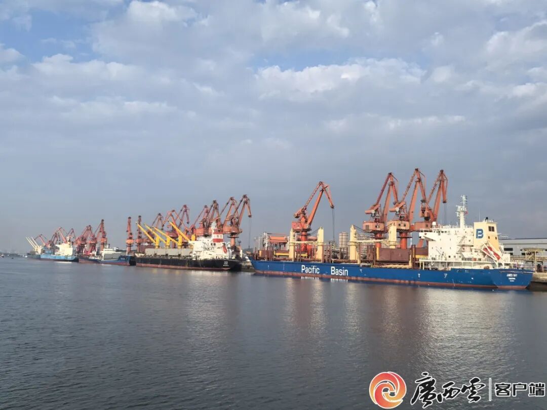 如今,防城港已建成万吨级以上泊位59个,其中,20万吨级泊位7个、15万吨级泊位4个、10万吨级泊位5个,全港综合通过能力达到2.08亿吨,形成了功能完备、布局合理的现代化港口体系,航线网络通达世界100多个国家和地区的250多个港口,实现东盟主要港口全覆盖。