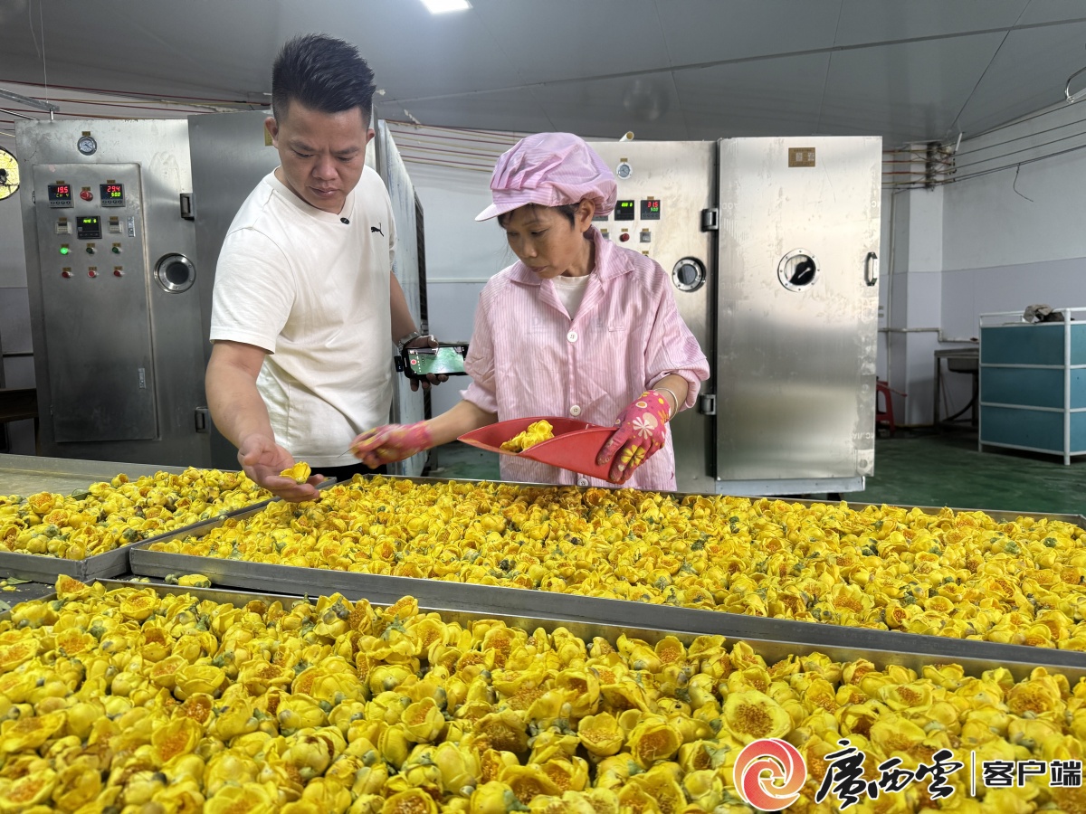 “金花茶生花要经过低温杀青、冻干、分类筛选、包装、真空冷冻等工序才能制成干花出售,整个流程需要15个小时左右。”大菉镇财政经济办主任张碧说。