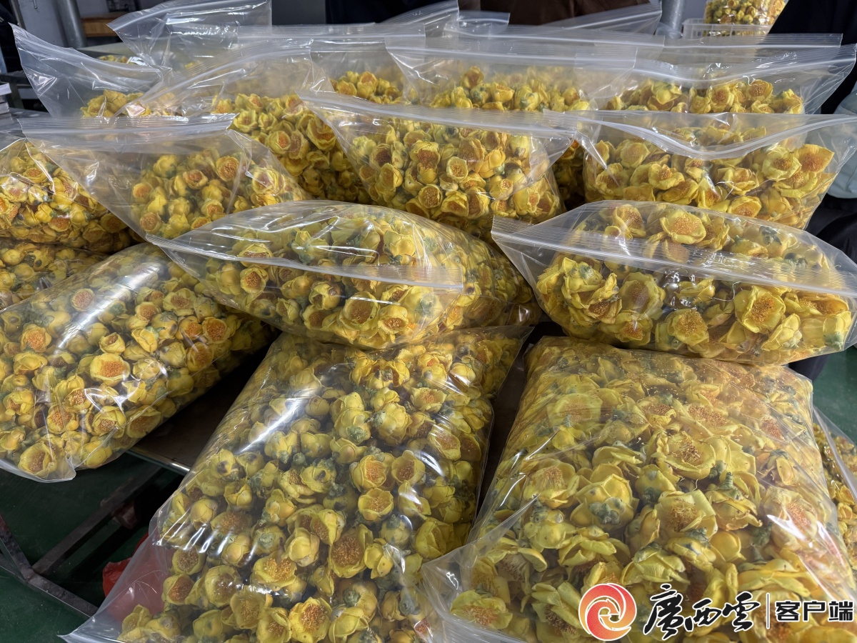 米中村党支部书记张旭说,金花茶每年开花一次,每年12月到次年3月是金花茶花期。目前,加工厂每日收购金花茶生花2000—3000斤,可日加工干花1000多斤,年产值约150万元。