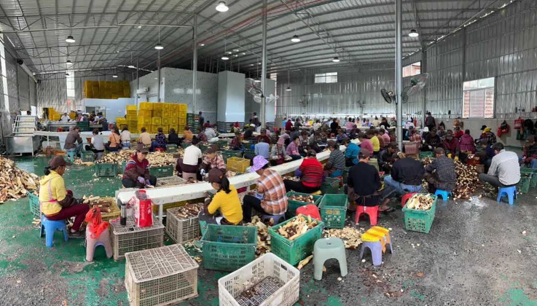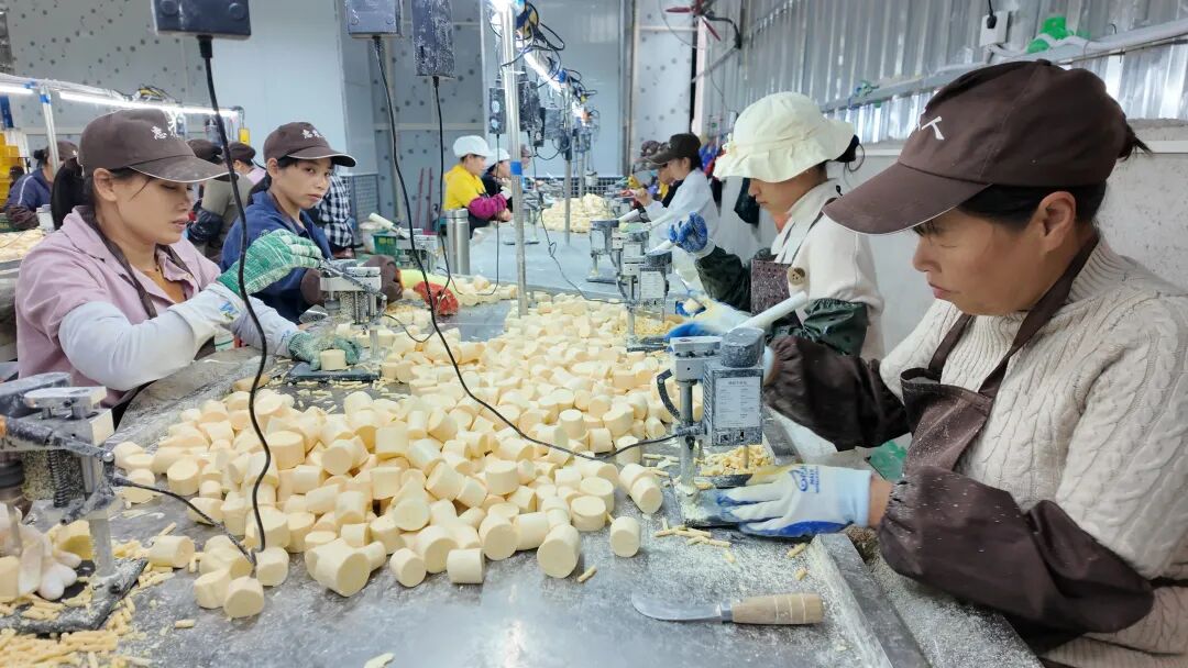 随着春节消费旺季的到来,防城区黄心木薯迎来了产销高峰。春节前夕,在大菉镇的四个加工厂的车间里,几百名工人正加紧分拣打包,去皮、切割、封装流水线高效运转,日均外销鲜薯达11万斤,年产值已突破亿元。“现在忙着赶订单,多挣一些收入,过一个红火年!”正在打包的施大姐笑容满面。大菉镇加工厂每天为女性群体提供450个就业岗位,每人日均收入130元,年均增收超千万元。
