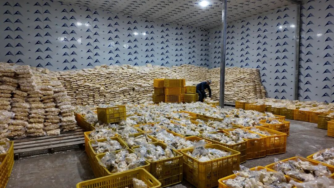 防城区细垌种养专业合作社真空包装好的木薯放在冷库。