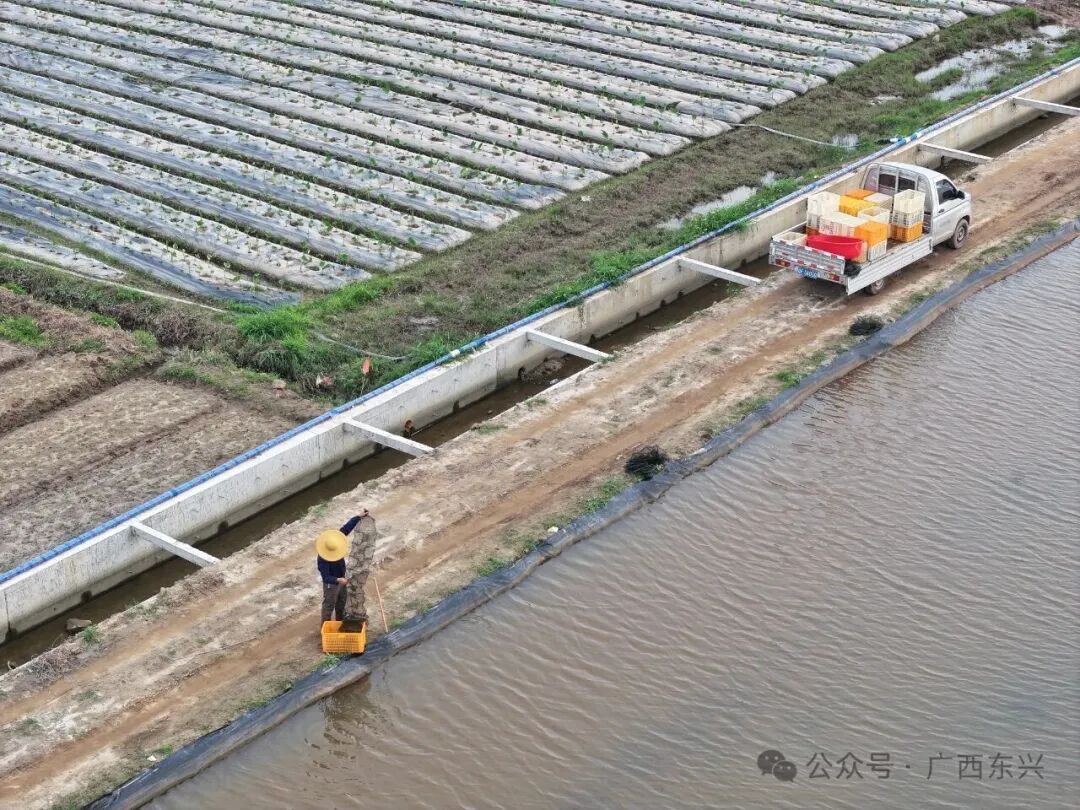 “东兴气候温暖湿润、水质优良,在这里养小龙虾,可以实现反季节上市,有价格优势。”望向基地,广西万融农业投资有限公司总经理李豪峰回忆道,眼前这片土地曾是盐碱地,因耕种效益低而几近撂荒。2025年,公司租赁了吒祖村的480亩闲置耕地,通过土壤改良、连片整合、农田水利配套等措施将“闲田”变“良田”,着力打造稻虾共养的立体生态农业模式。在该模式中,水稻为小龙虾提供栖息和躲避天敌的生长环境,小龙虾则以稻田中的害虫、杂草等为食,其排泄物可提升土壤肥力。互利共生的生态循环有助于实现“一水两用、一田双收”的集约效益。