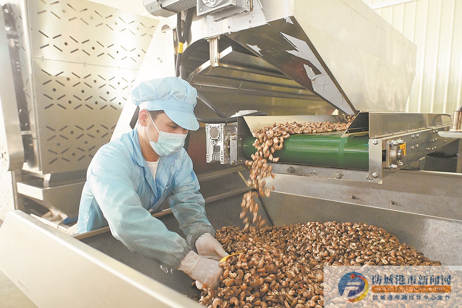 4月3日,中国-东盟(防城港)农产品智慧加工分拨中心腰果落地加工项目投产仪式在东兴市江平工业园举办。