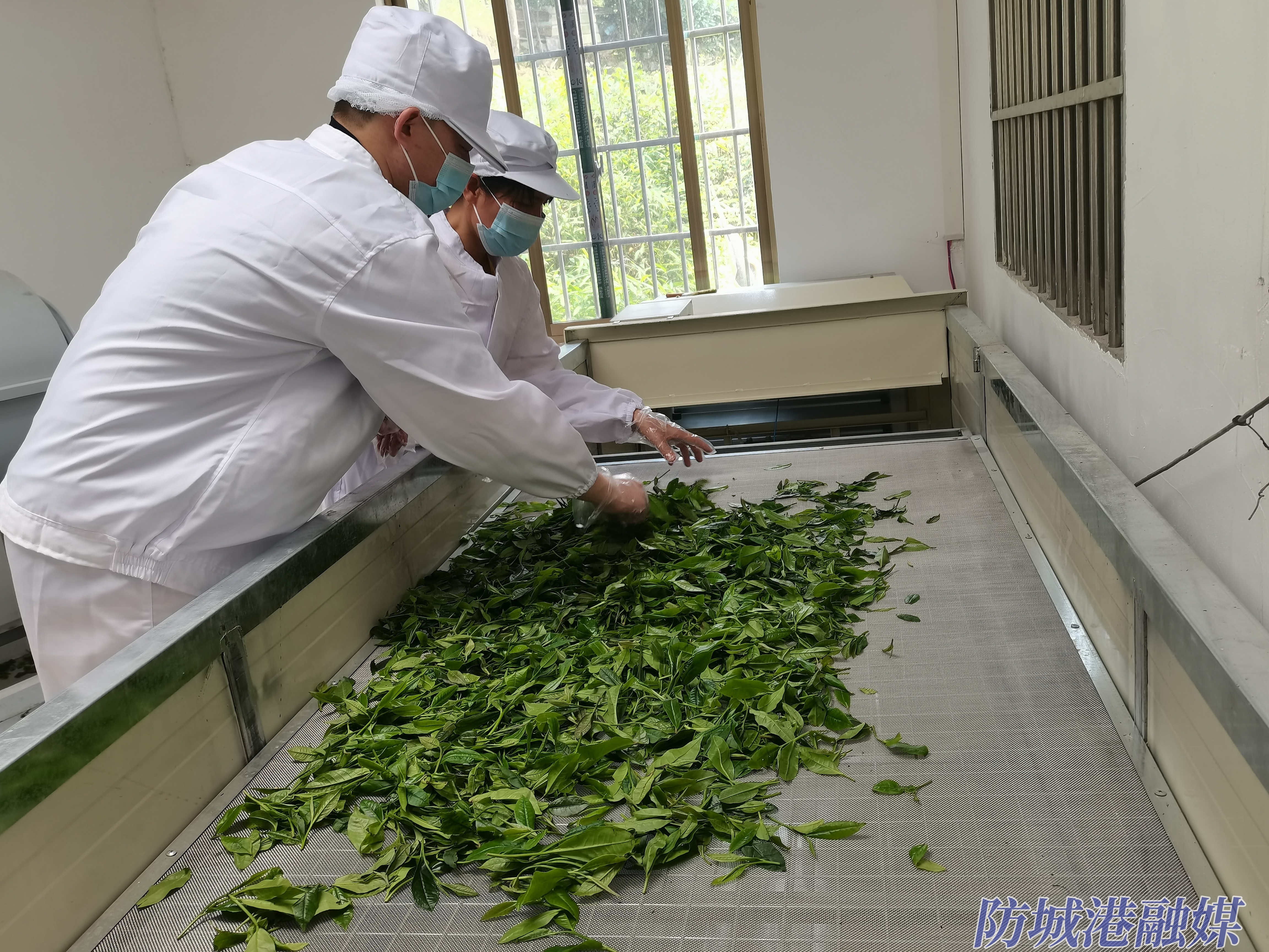 工人对刚收购的春茶进行加工。