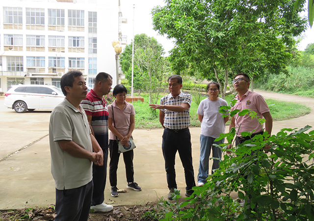 在桂平新材料产业园,徐炯志研究员、罗慧站长、方中斌正高级农艺师与桂平市科技特派员邓耀秋、郭映云等一起,实地了解、观察基地芒果种植管理和生长情况,就芒果如何矮化及换种改良提出具体的操作方案,建议矮化并嫁接适宜厂区绿化与生产两用品种,如金煌芒、台农一号及贵妃芒,实地指导嫁接及时防治病虫害等。