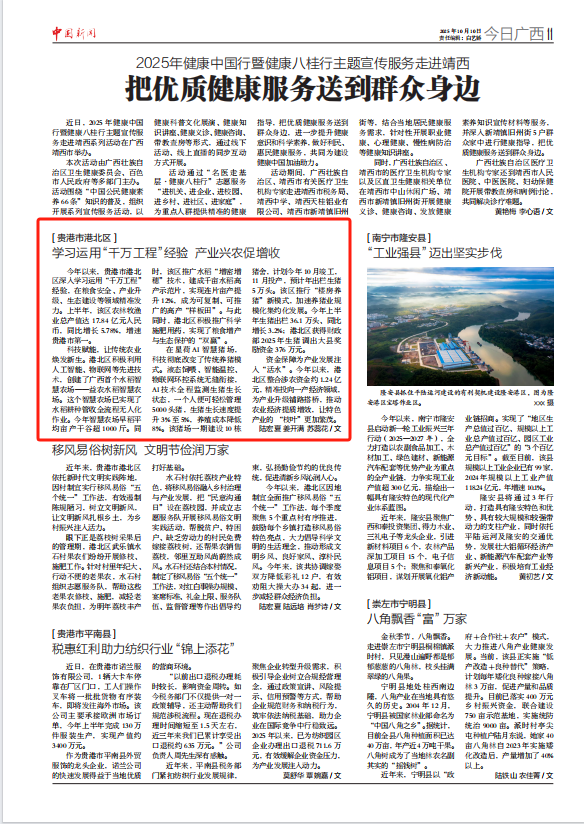 中国新闻报 | 贵港市港北区:学习运用“千万工程”经验 产业兴农促增收