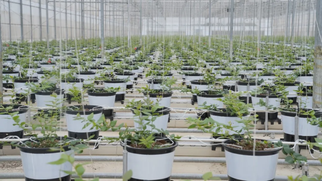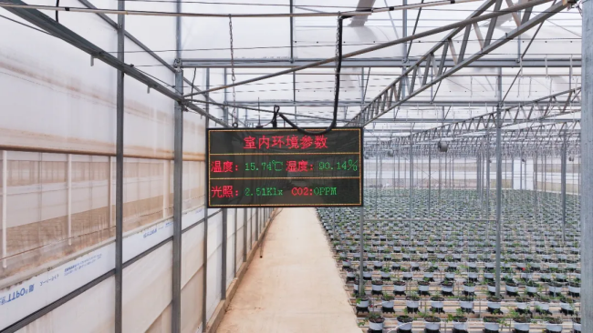 除了水肥一体化系统,基地还配备了智能温控和全程智能品控监测系统,可精准调控大棚内的温度、湿度和光照,为蓝莓生长营造最佳环境。基地首批果预计今年12月即可错峰上市,抢占市场先机。