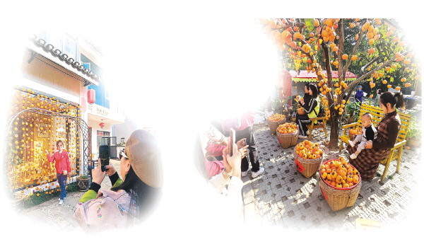 朱先生家的柿子园位于村道旁,此时,园子里还有不少已经成熟的柿子挂在树上,之所以不摘,就是专门留着给游客拍照的。入园费10元,游客络绎不绝。“这段时间是村里的旅游旺季,留着柿子让人参观,收入比摘下来卖更高。”朱成林解释说。