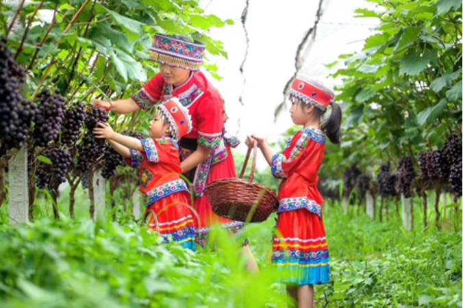 为提升品牌溢价,兴安正整合分散商标,推出统一包装标识。2025年,“兴安葡萄”区域公用品牌价值预计突破30亿元,产品覆盖全国30个省份及越南等东盟国家。兴安县农业农村局负责人介绍,下一步,将推动“葡萄+文旅”深度融合,让兴安不仅是“葡萄之乡”,更成为“田园综合体”的典范。