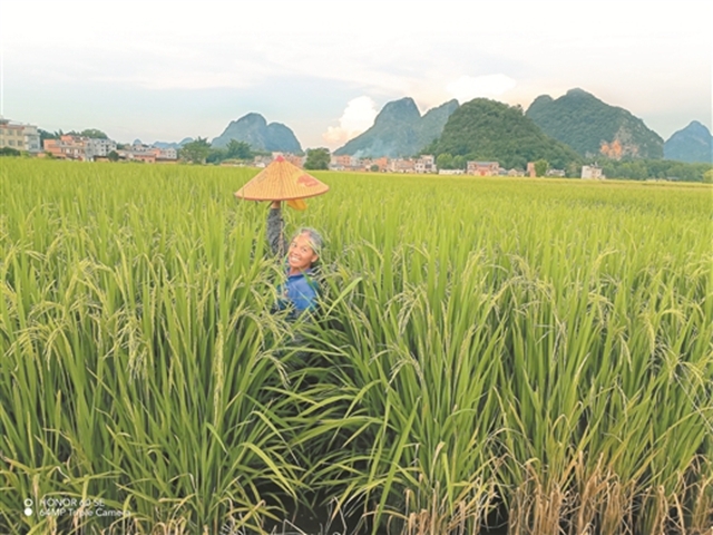 数据显示,在河池市巴马瑶族自治县巴马镇巴廖村,今年早稻增密增穗点测产达502.27公斤/亩,平均单产同比增加31.92公斤/亩。