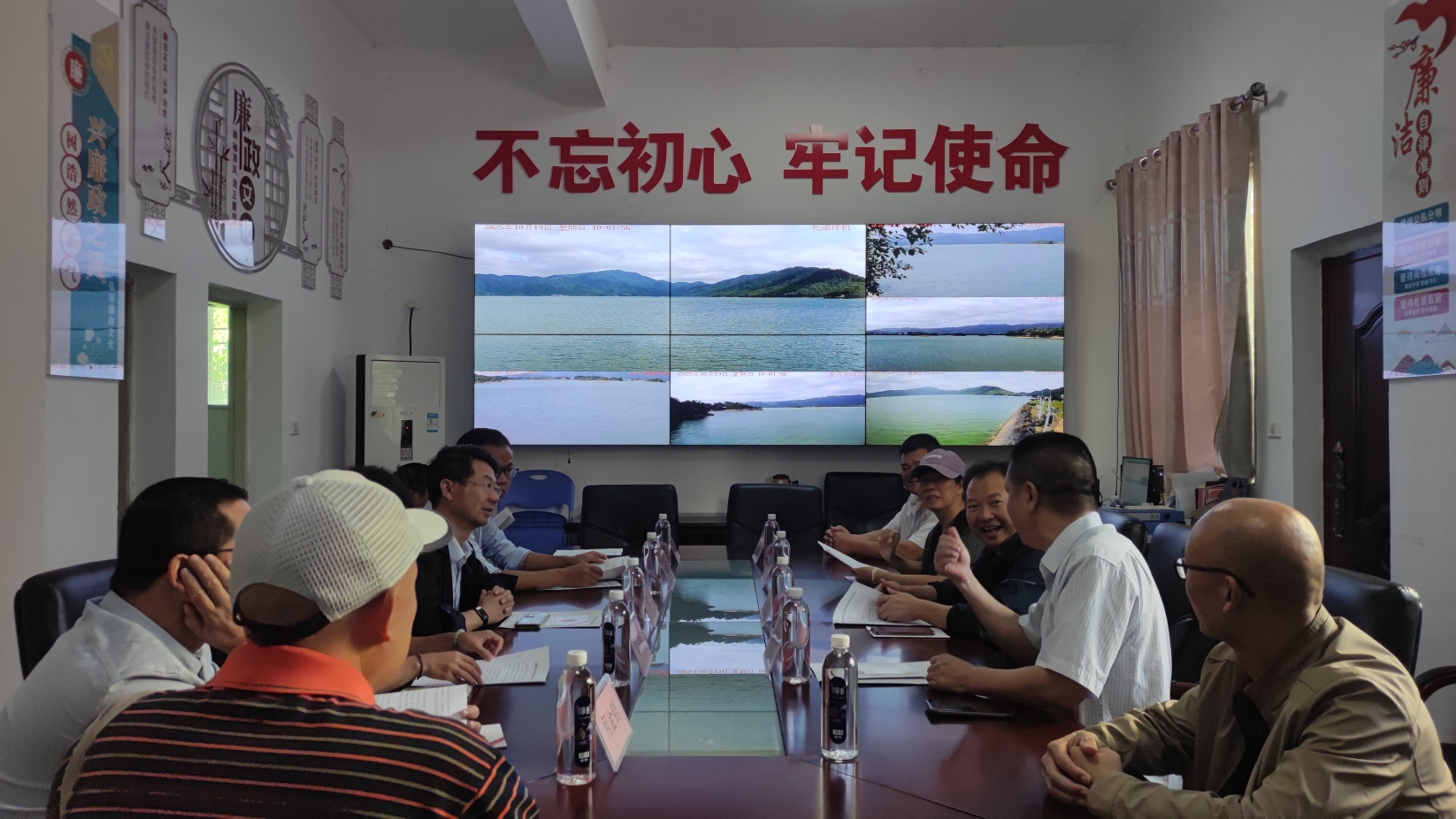 调研组在桂林灵川青狮潭水库库区管理站监控室座谈交流