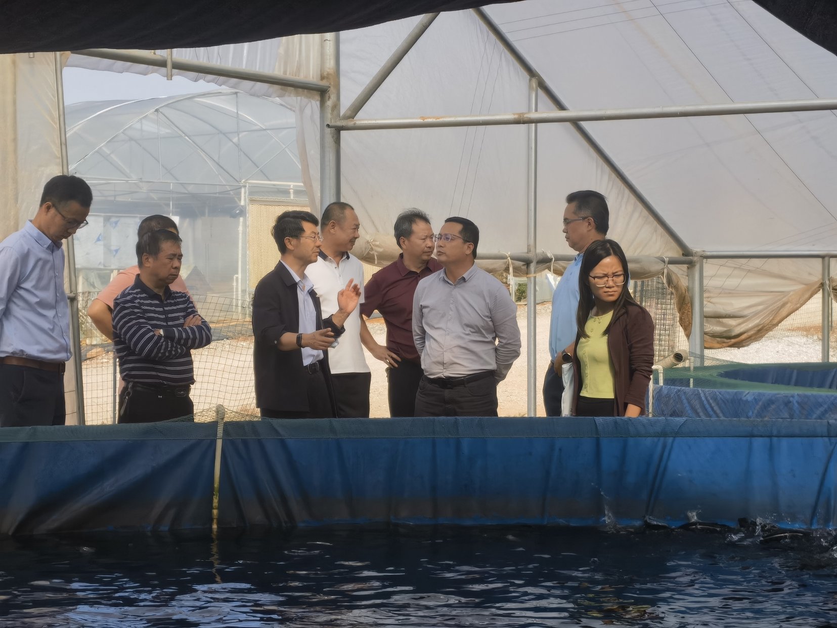 下午,调研组到达雁山区广西农垦良丰农场有限公司陆基圆形池“鱼+菜”生态种养循环示范基地,就生态健康养殖、尾水治理、用药减量、配合饲料替代幼杂鱼、水产种业质量提升“五大行动”实施情况、存在问题进行了技术指导。