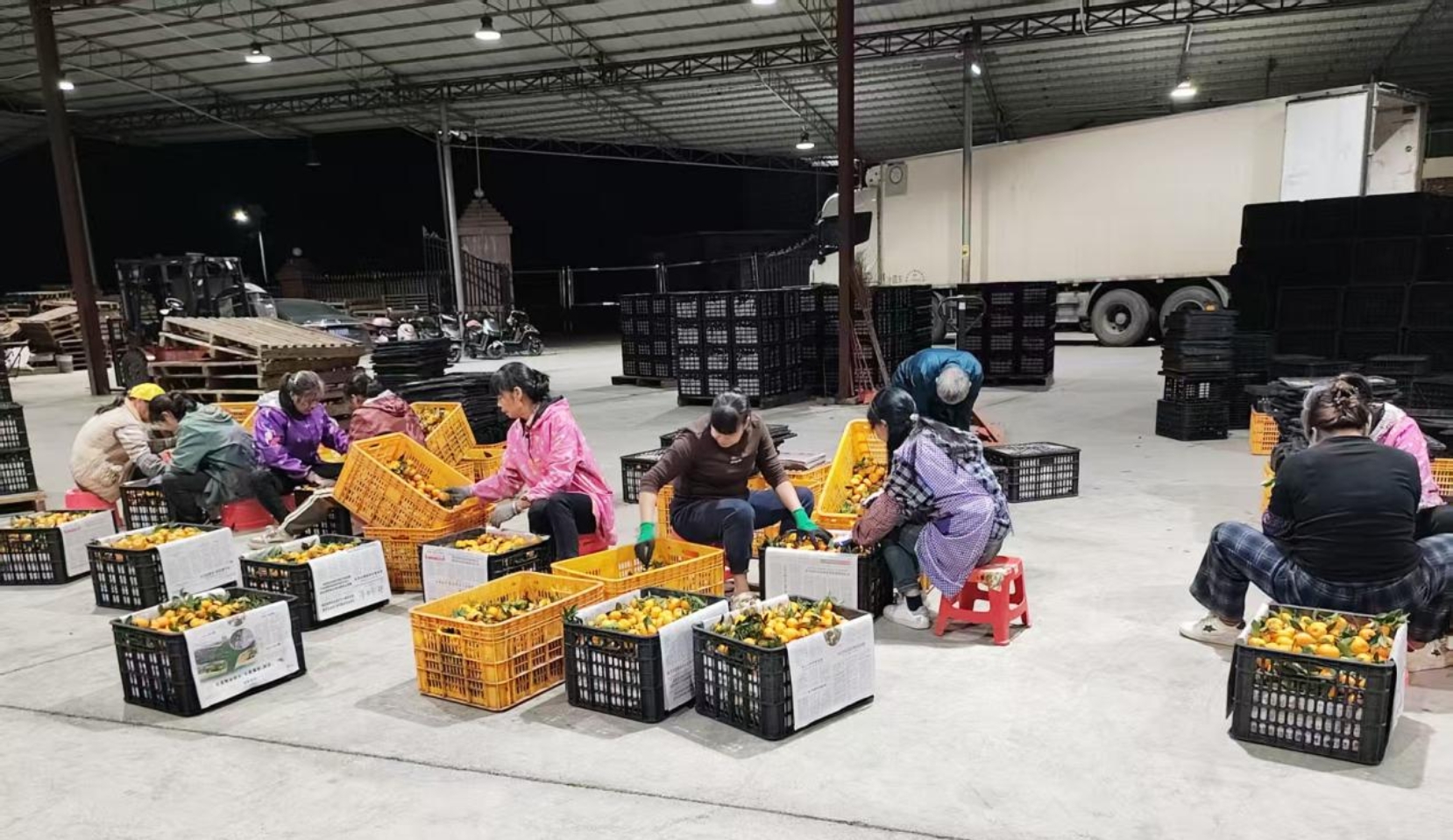 踏入柑桔物流中心,机器运转的轰鸣声便清晰地传入耳中,智能分拣设备正高速运转。收购的一筐筐金秋砂糖橘被放到传送带上,依次进行清洗、分拣、装筐、打包。“从10月15日开始,我们的分拣线就没停过!每天发出去50000多斤金秋砂糖橘,订单量多时能发80000斤,每天都安排20余名工人同时开工,果子主要销往佛山和中山等地,客户都对我们的砂糖橘赞不绝口。”冯老板指着一筐筐打包好的金秋砂糖橘高兴地说。