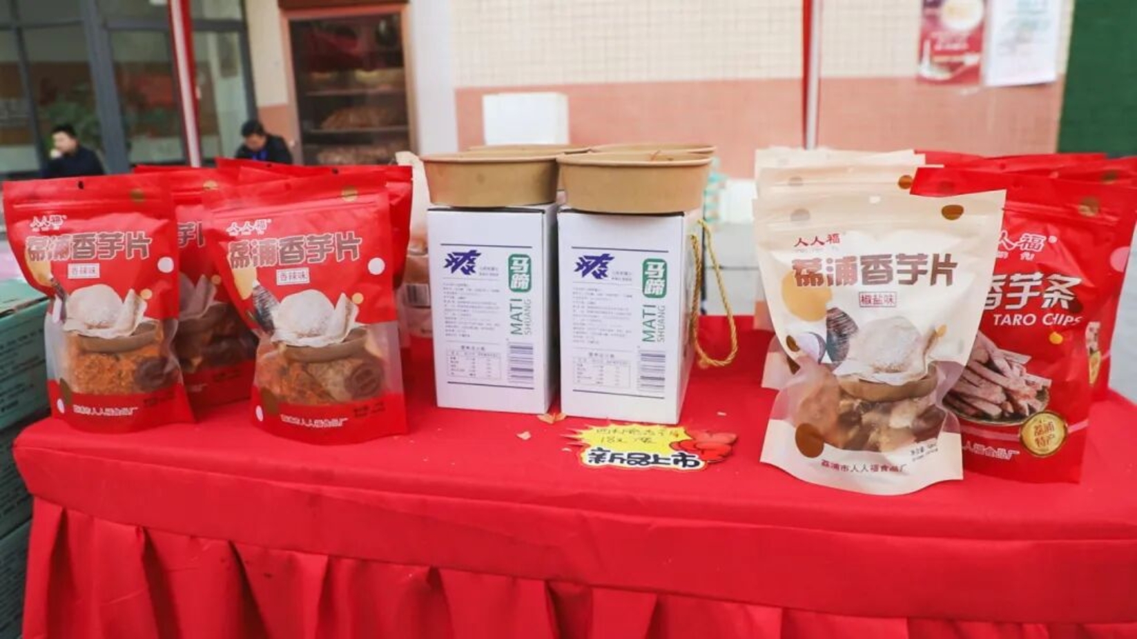 航天城内帮扶氛围浓厚,大地村展位前人头攒动。参展产品皆是兼具特色与竞争力的“拳头品”:新鲜采挖的荔浦芋个大饱满、香气浓郁;现场蒸煮的荔浦芋、芋丸、马蹄丸口感香甜;经典的广西传统宴席佳肴——荔浦芋扣肉,更是一亮相便征服了“航天人”的味蕾;桂花马蹄、酥脆芋头条、芋头片等深加工产品,也备受青睐,充分展现了大地村在农产品深加工领域的创新能力和产业延伸成果。