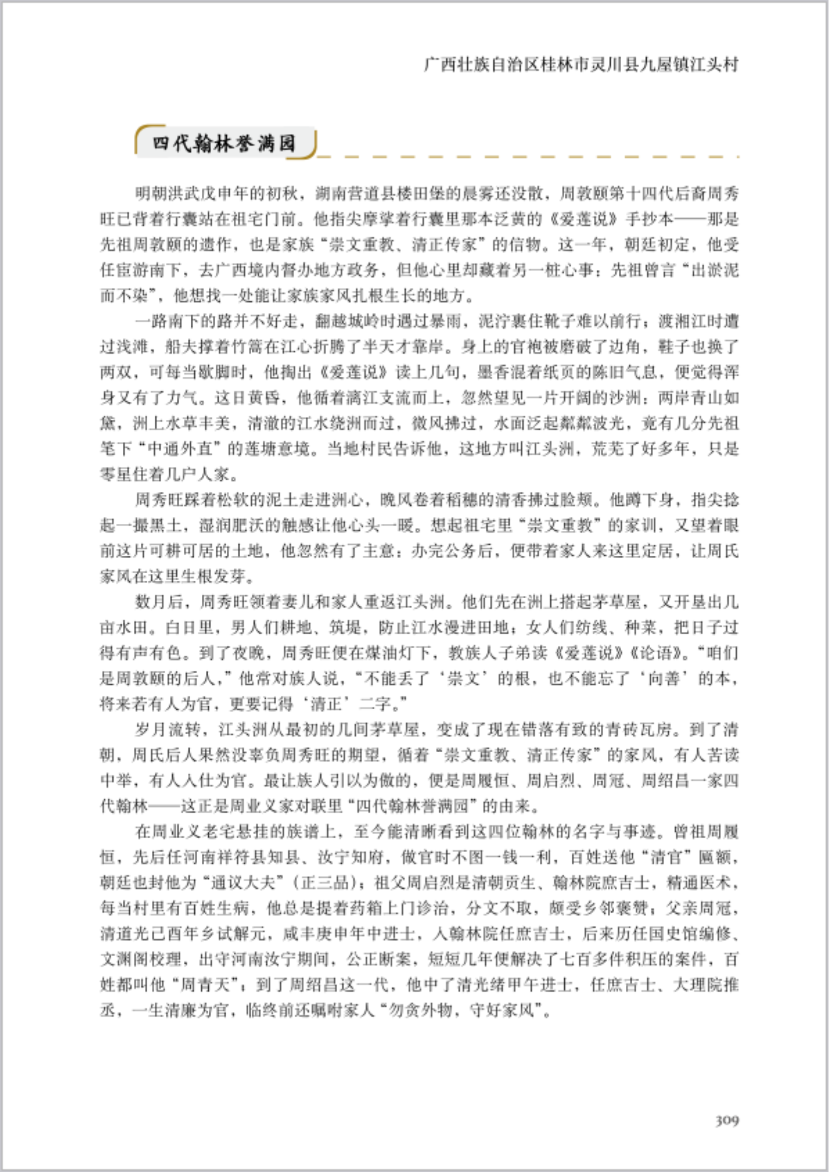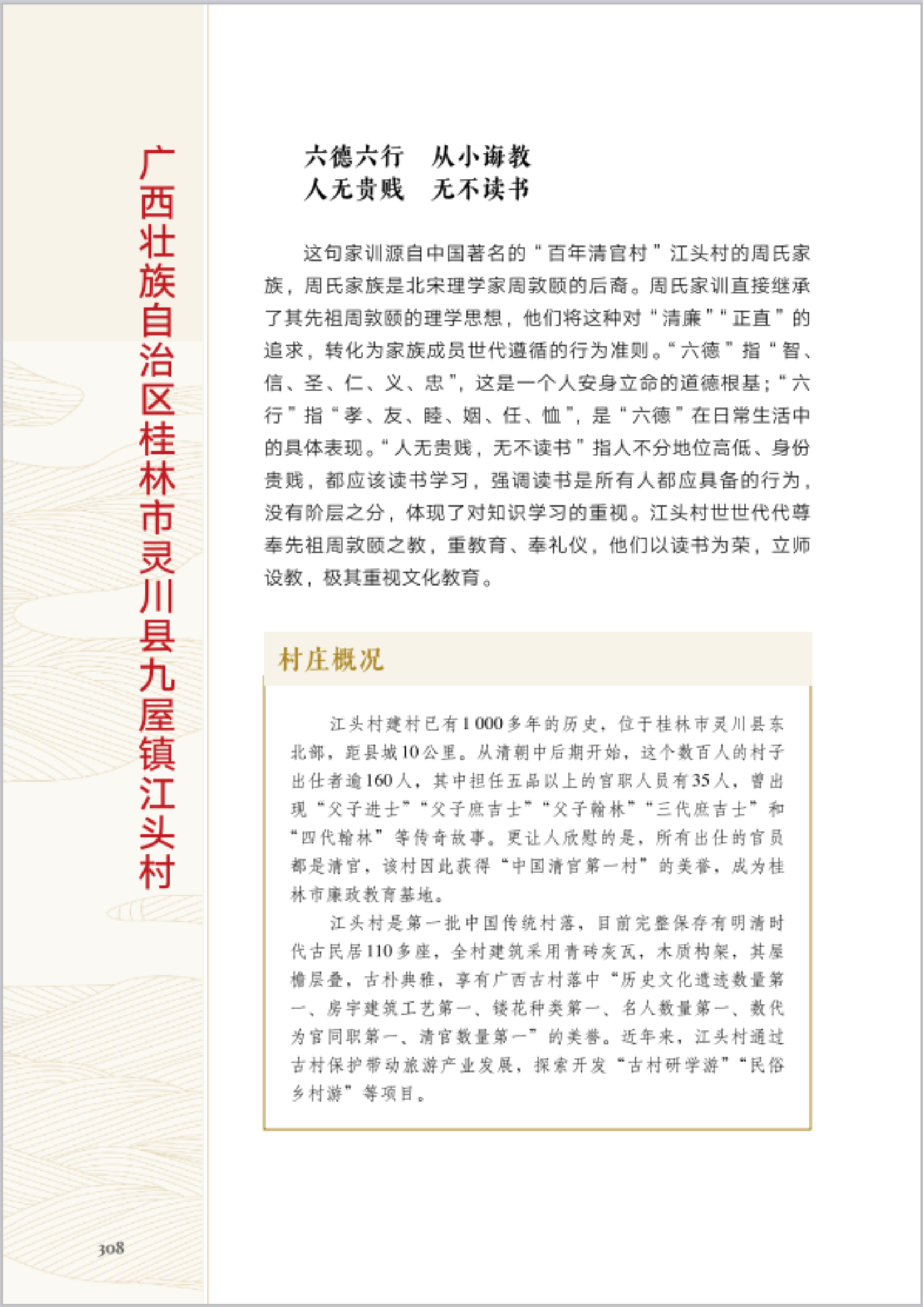 桂林市灵川县江头村入选中国农业出版社《村庄里的家风家训故事》