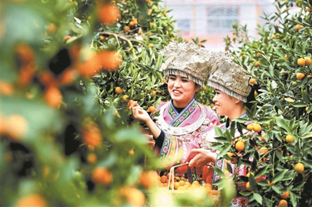 融安县的金桔种植园里硕果盈枝。谭凯兴/摄 (本文图片除署名外由各地文旅部门、视觉中国提供)