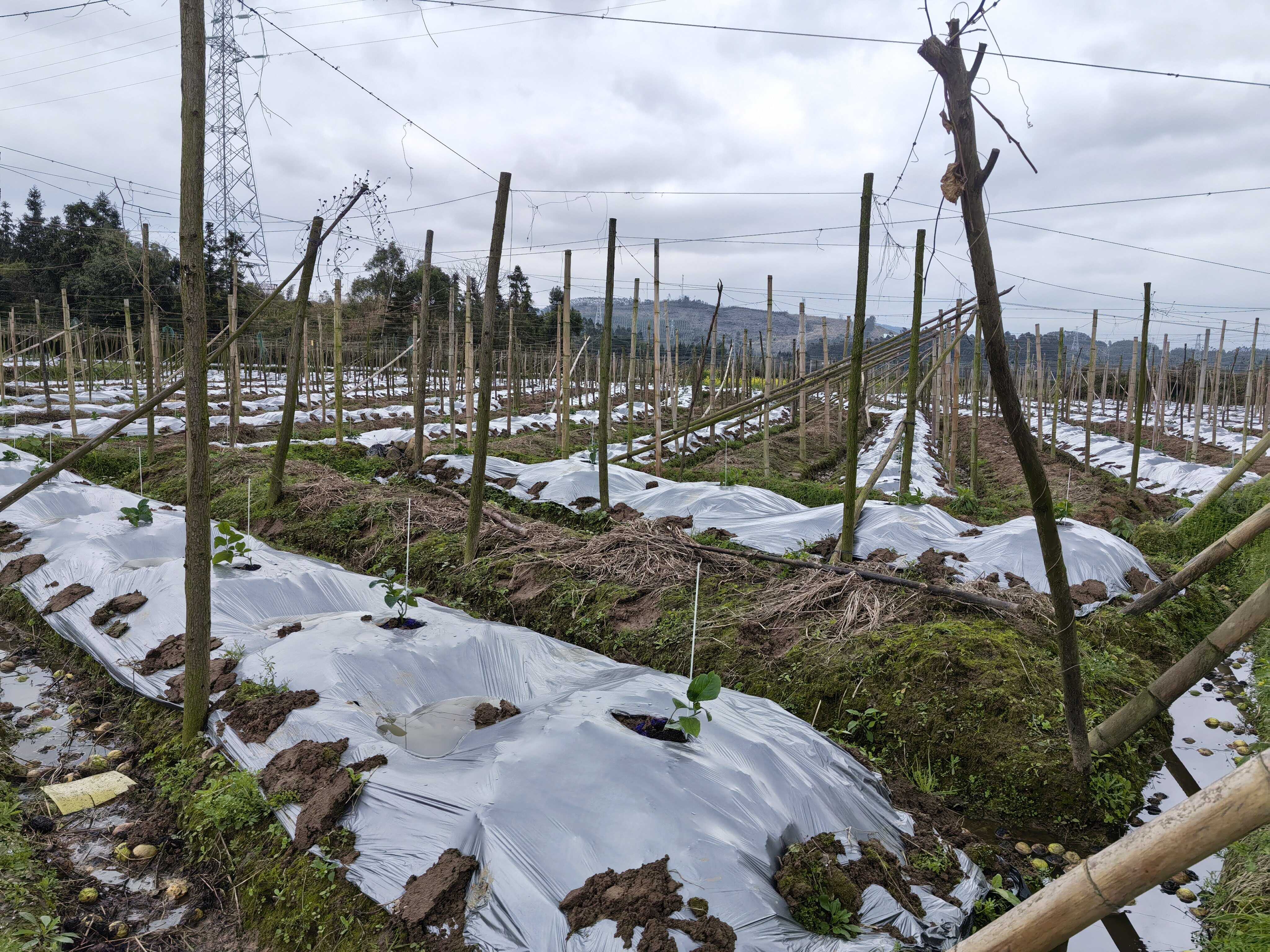 新定植的百香果苗喜迎春风