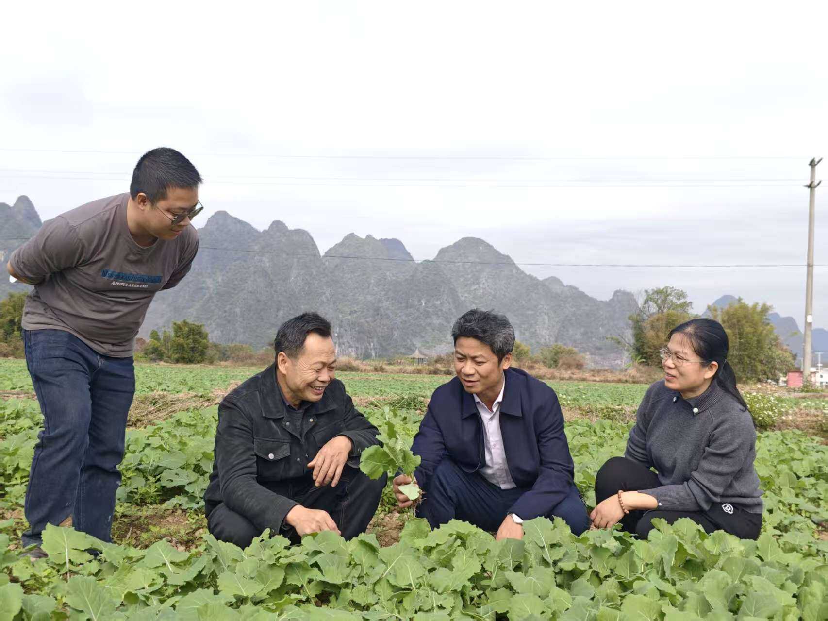 随后工作组前往鹿寨县中度镇马安村的油菜种植基地,查看油菜长势,详细询问种植户在水肥管理等环节遇到的问题,现场讲解冬季油菜防寒保苗、优化栽培等实用技术,针对当前苗情给出精细化田间管理建议。